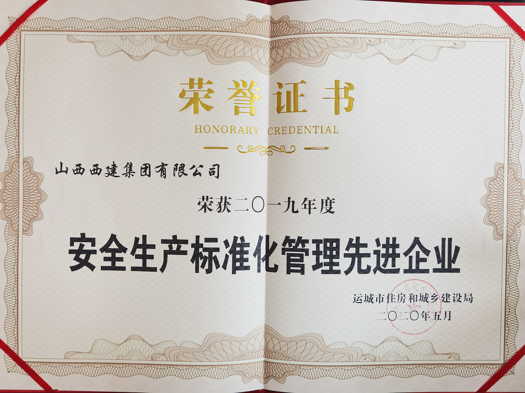 ▲山西西建集團(tuán)有限公司榮獲“2019年度安全生產(chǎn)標(biāo)準(zhǔn)化管理先進(jìn)企業(yè)”