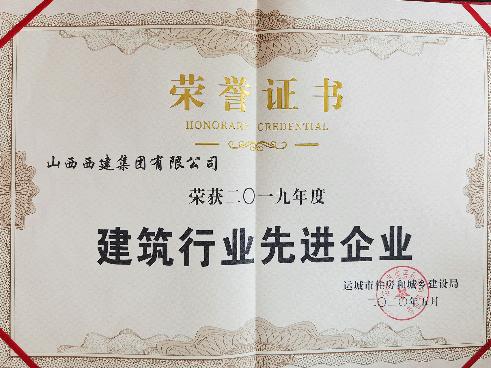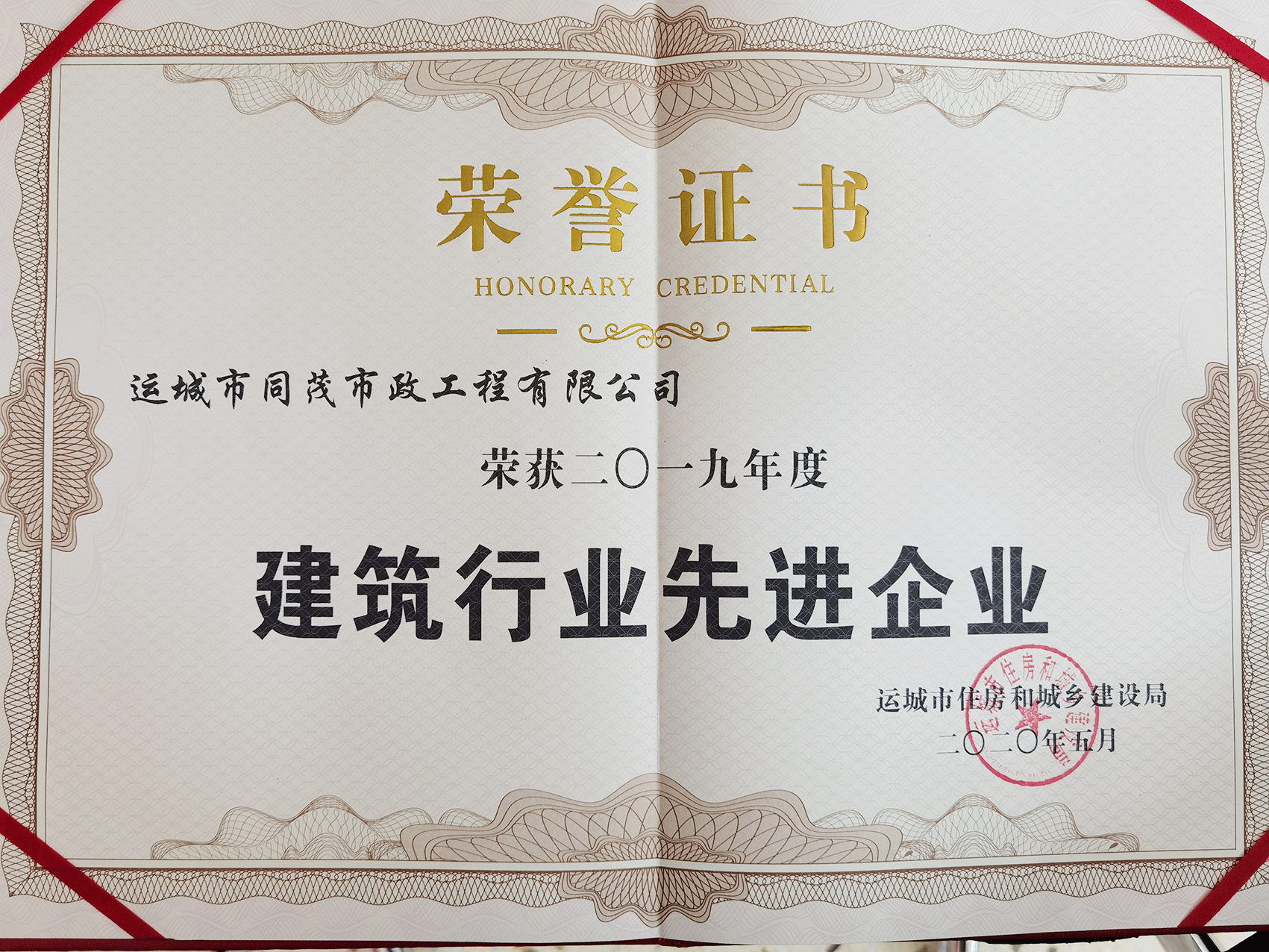 ▲運(yùn)城市同茂市政工程有限公司榮獲“2019年度建筑行業(yè)先進(jìn)企業(yè)”