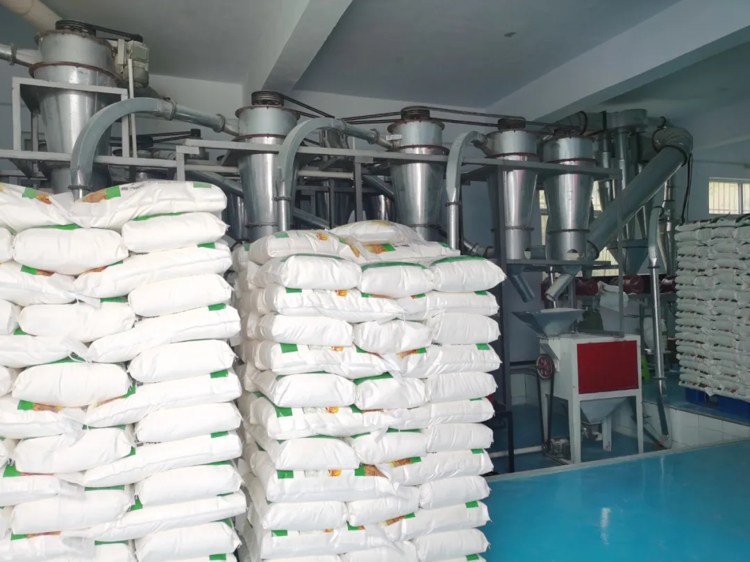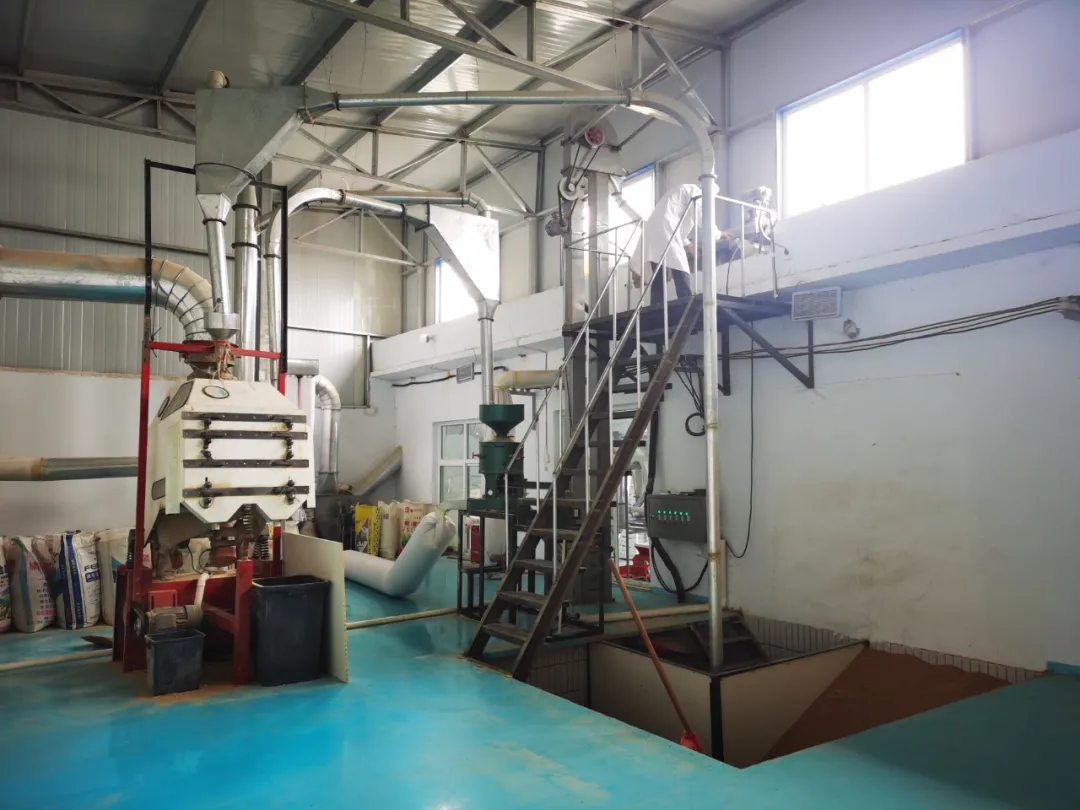 在駐村第一書記王靜的帶領下,西建集團天茂房產(chǎn)工作人員參觀了面粉廠的生產(chǎn)間,并深入了解了毛家山面粉的制作工藝及流程。
