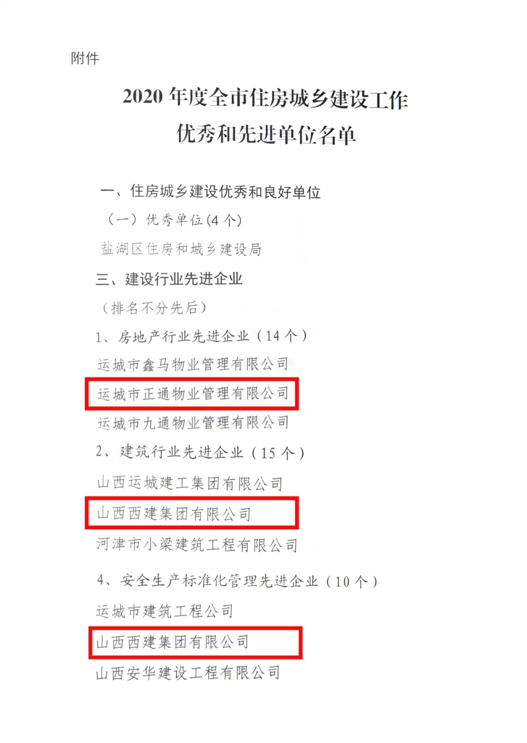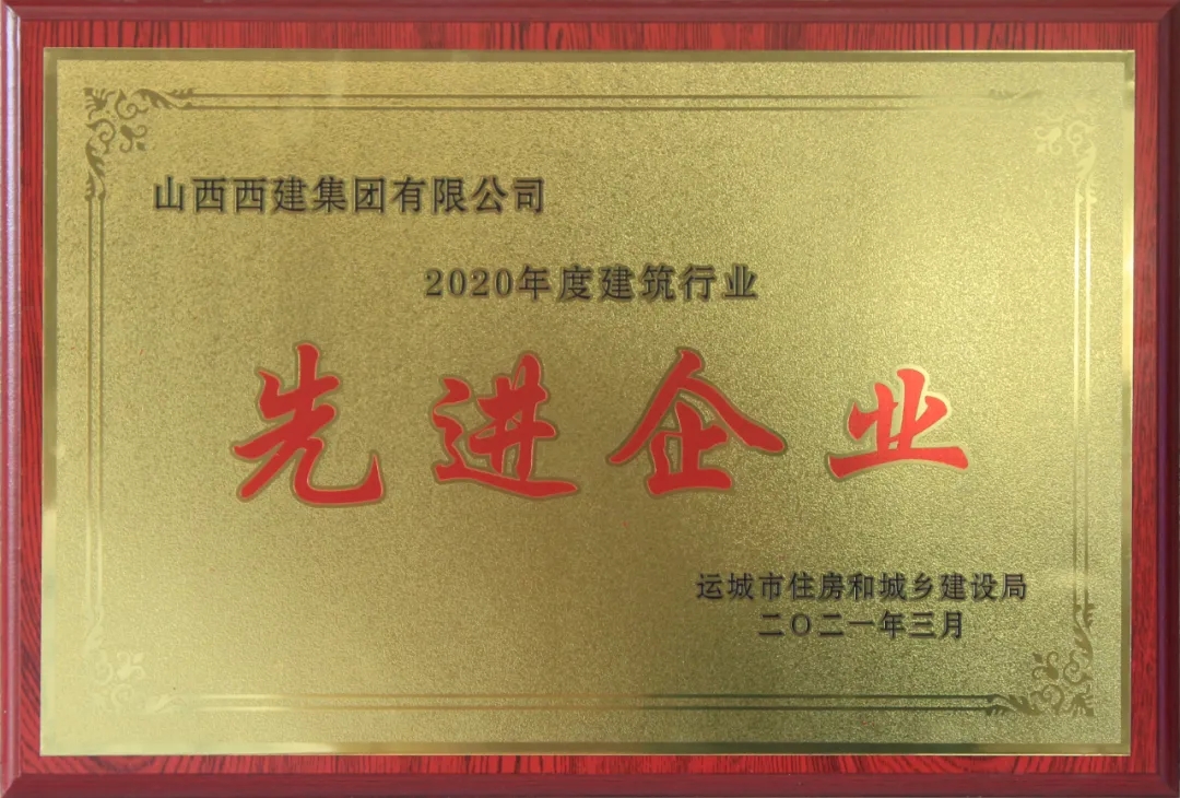 ▲山西西建集團有限公司榮獲“2020年度建筑行業先進企業”